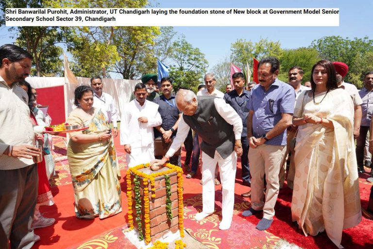 Shri Banwarilal Purohit, Administrator, UT Chandigarh laying the foundation stone of New block at Government Model Senior Secondary School Sector 39, Chandigarh